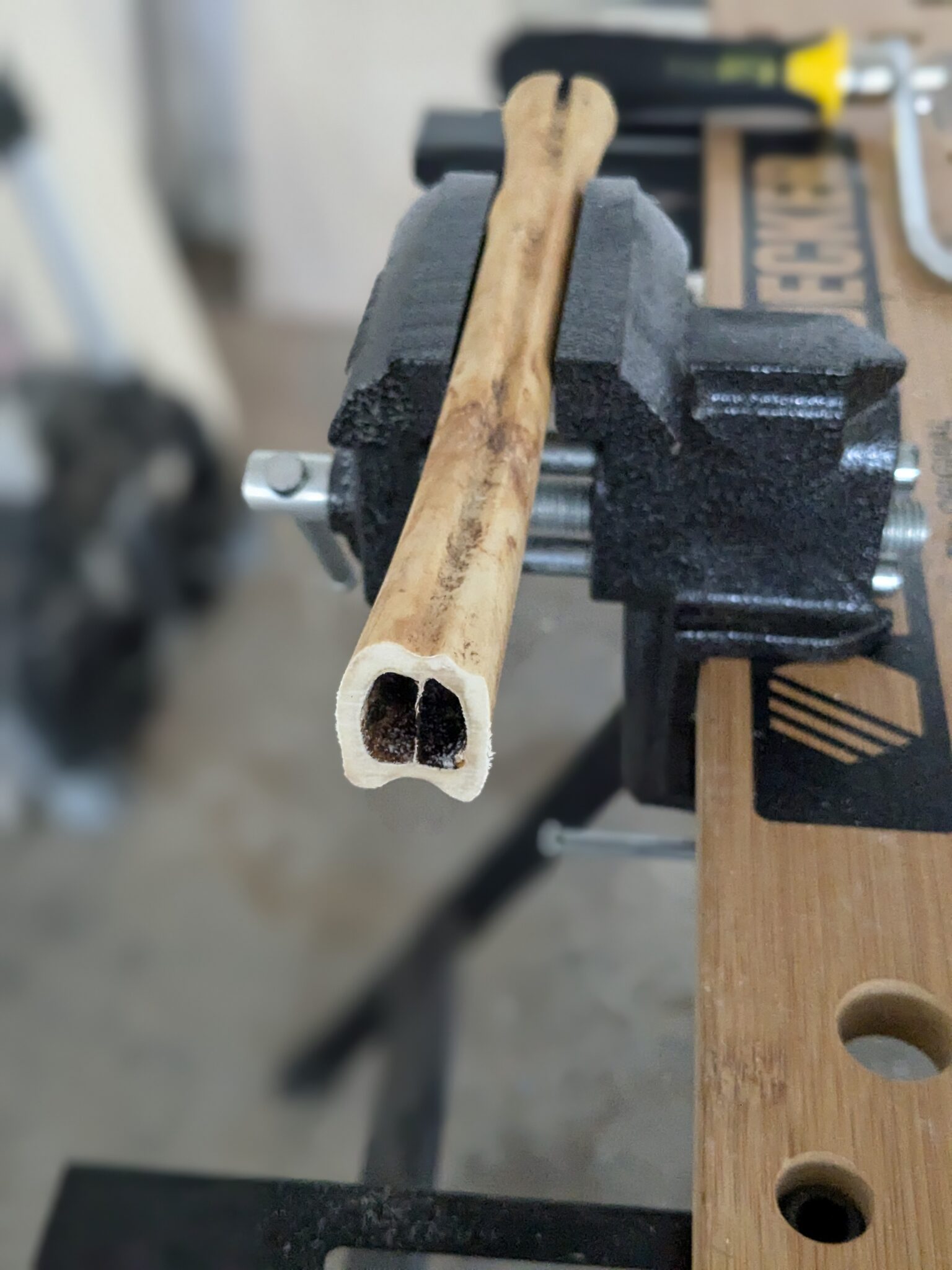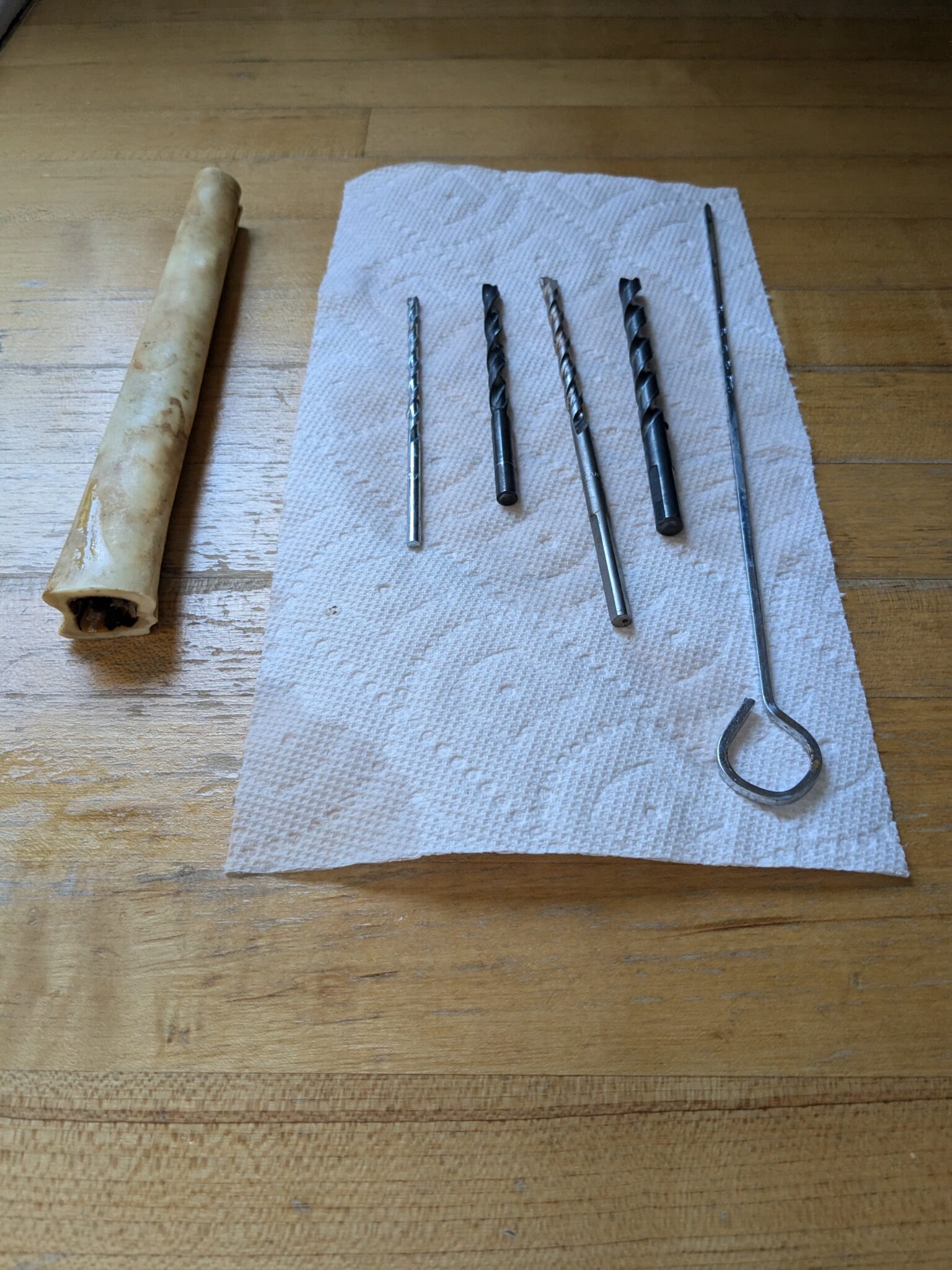 The next task was to clean out the marrow. I used a variety of tools including a drill with some long bits, a skewer, and a disposable chopstick from my last Thai takeout experience.
