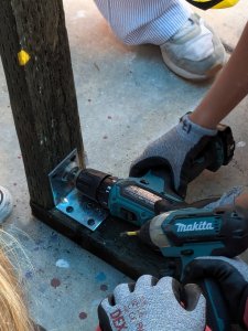 I spent a day teaching the students proper safety protocol and having them practice using drills and drivers, then I turned them loose. We started by constructing each of the four walls, then set them up and bolted them together.