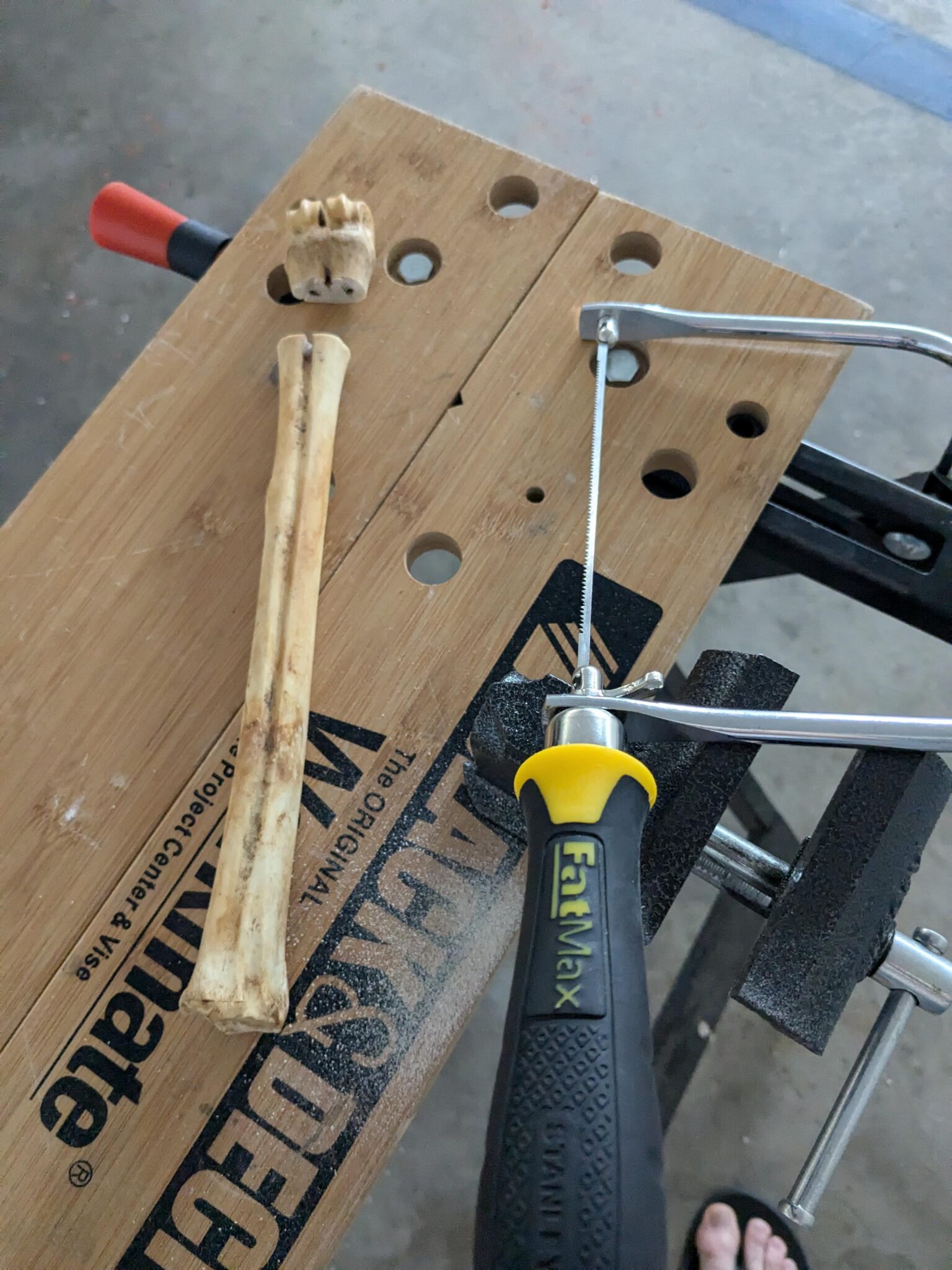 I’m working on a middle grade fantasy book called The Bone Flute. The book, perhaps not surprisingly, features a magical flute made from a vulture’s wing bone. I have made branch flutes and bamboo flutes but never bone so I decided to give it a try. It’s not easy to get a wing bone from a vulture. In fact, vultures are protected under the migratory bird act and only enrolled members of a native american tribe can use their feathers and bones. These must be requested from the national repository. So, I decided to use a deer bone. I ordered two femurs from Centralia Fur and Hide.