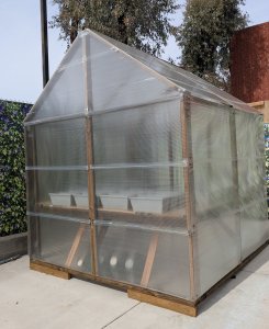 Finally, it was ready. Even without a door on it (I’ll get to it…) it’s about 10-15 degrees warmer inside the greenhouse. The 6th grade science teacher is going to use most of the space for a project but we planted a few vegetables: